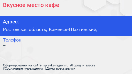 Вкусное место, кафе по адресу Ростовская область, Каменск-Шахтинский, в дальнейшем Организация, размещена в следующих категориях: