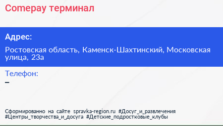 Comepay, терминал по адресу Ростовская область, Каменск-Шахтинский, Московская улица, 23а в дальнейшем Организация, размещена в следующих категориях: