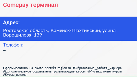 Comepay, терминал по адресу Ростовская область, Каменск-Шахтинский, улица Ворошилова, 139 в дальнейшем Организация, размещена в следующих категориях: