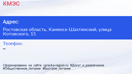 КМЭС по адресу Ростовская область, Каменск-Шахтинский, улица Котовского, 15 в дальнейшем Организация, размещена в следующих категориях: