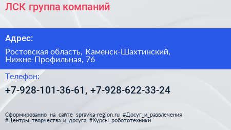 ЛСК, группа компаний по адресу Ростовская область, Каменск-Шахтинский, Нижне-Профильная, 76 в дальнейшем Организация, размещена в следующих категориях: