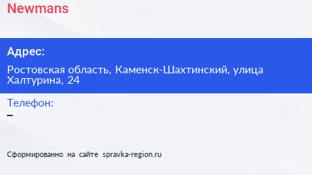 Newmans по адресу Ростовская область, Каменск-Шахтинский, улица Халтурина, 24 в дальнейшем Организация, размещена в следующих категориях: