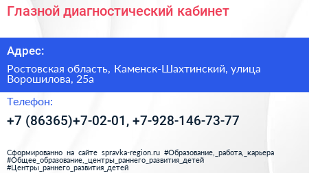 Глазной диагностический кабинет по адресу Ростовская область, Каменск-Шахтинский, улица Ворошилова, 25а в дальнейшем Организация, размещена в следующих категориях: