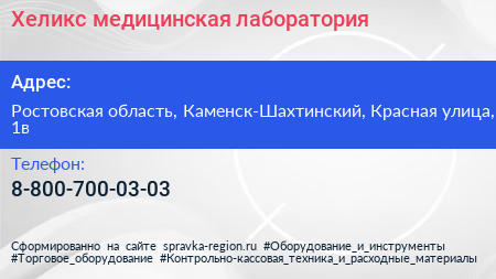Хеликс, медицинская лаборатория по адресу Ростовская область, Каменск-Шахтинский, Красная улица, 1в в дальнейшем Организация, размещена в следующих категориях: