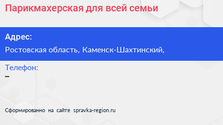 Парикмахерская для всей семьи по адресу Ростовская область, Каменск-Шахтинский, в дальнейшем Организация, размещена в следующих категориях:
