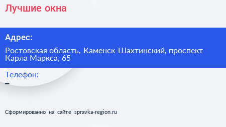 Лучшие окна по адресу Ростовская область, Каменск-Шахтинский, проспект Карла Маркса, 65 в дальнейшем Организация, размещена в следующих категориях: