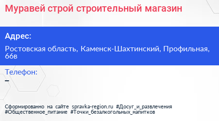 Муравей cтрой, строительный магазин по адресу Ростовская область, Каменск-Шахтинский, Профильная, 66в в дальнейшем Организация, размещена в следующих категориях:
