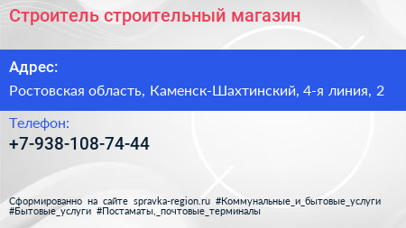 Строитель, строительный магазин по адресу Ростовская область, Каменск-Шахтинский, 4-я линия, 2 в дальнейшем Организация, размещена в следующих категориях: