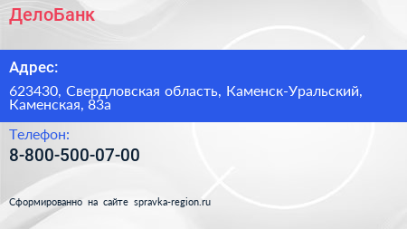 ДелоБанк по адресу 623430, Свердловская область, Каменск-Уральский, Каменская, 83а в дальнейшем Организация, размещена в следующих категориях: