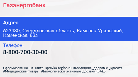 Газэнергобанк по адресу 623430, Свердловская область, Каменск-Уральский, Каменская, 83а в дальнейшем Организация, размещена в следующих категориях: