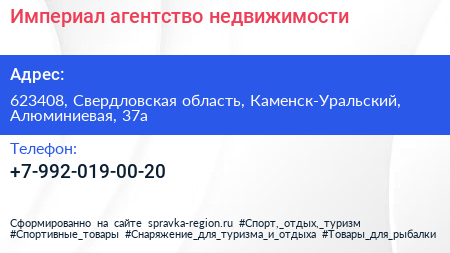 Империал, агентство недвижимости по адресу 623408, Свердловская область, Каменск-Уральский, Алюминиевая, 37а в дальнейшем Организация, размещена в следующих категориях: