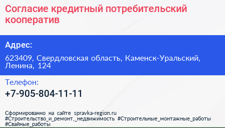 Согласие, кредитный потребительский кооператив по адресу 623409, Свердловская область, Каменск-Уральский, Ленина, 124 в дальнейшем Организация, размещена в следующих категориях: