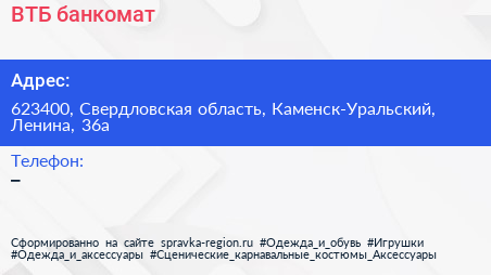 ВТБ, банкомат по адресу 623400, Свердловская область, Каменск-Уральский, Ленина, 36а в дальнейшем Организация, размещена в следующих категориях: