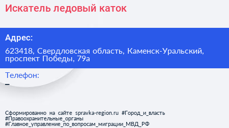 Искатель, ледовый каток по адресу 623418, Свердловская область, Каменск-Уральский, проспект Победы, 79а в дальнейшем Организация, размещена в следующих категориях: