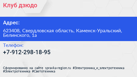 Клуб дзюдо по адресу 623408, Свердловская область, Каменск-Уральский, Белинского, 1а в дальнейшем Организация, размещена в следующих категориях: