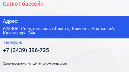 Салют, бассейн по адресу 623406, Свердловская область, Каменск-Уральский, Каменская, 34а в дальнейшем Организация, размещена в следующих категориях: