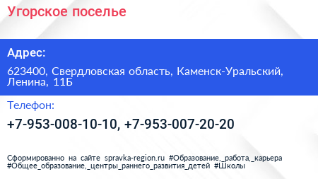 Угорское поселье по адресу 623400, Свердловская область, Каменск-Уральский, Ленина, 11Б в дальнейшем Организация, размещена в следующих категориях: