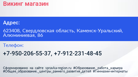 Викинг, магазин по адресу 623408, Свердловская область, Каменск-Уральский, Алюминиевая, 86 в дальнейшем Организация, размещена в следующих категориях: