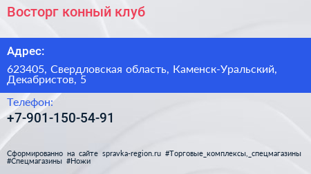 Восторг, конный клуб по адресу 623405, Свердловская область, Каменск-Уральский, Декабристов, 5 в дальнейшем Организация, размещена в следующих категориях: