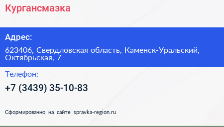 Кургансмазка по адресу 623406, Свердловская область, Каменск-Уральский, Октябрьская, 7 в дальнейшем Организация, размещена в следующих категориях: