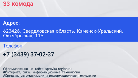 33 комода по адресу 623426, Свердловская область, Каменск-Уральский, Октябрьская, 116 в дальнейшем Организация, размещена в следующих категориях:
