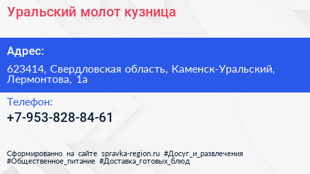 Уральский молот, кузница по адресу 623414, Свердловская область, Каменск-Уральский, Лермонтова, 1а в дальнейшем Организация, размещена в следующих категориях: