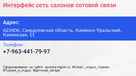 Интерфейс, сеть салонов сотовой связи по адресу 623406, Свердловская область, Каменск-Уральский, Каменская, 11 в дальнейшем Организация, размещена в следующих категориях: