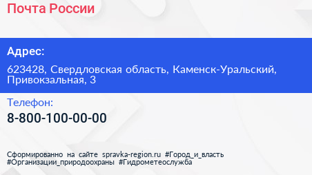 Почта России по адресу 623428, Свердловская область, Каменск-Уральский, Привокзальная, 3 в дальнейшем Организация, размещена в следующих категориях: