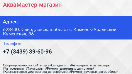 АкваМастер, магазин по адресу 623430, Свердловская область, Каменск-Уральский, Каменская, 86 в дальнейшем Организация, размещена в следующих категориях: