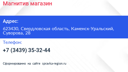 Магнитив, магазин по адресу 623430, Свердловская область, Каменск-Уральский, Суворова, 28 в дальнейшем Организация, размещена в следующих категориях:
