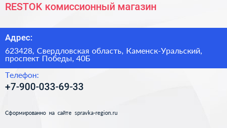 RESTOK, комиссионный магазин по адресу 623428, Свердловская область, Каменск-Уральский, проспект Победы, 40Б в дальнейшем Организация, размещена в следующих категориях: