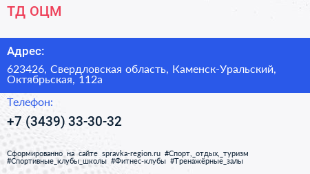 ТД ОЦМ по адресу 623426, Свердловская область, Каменск-Уральский, Октябрьская, 112а в дальнейшем Организация, размещена в следующих категориях: