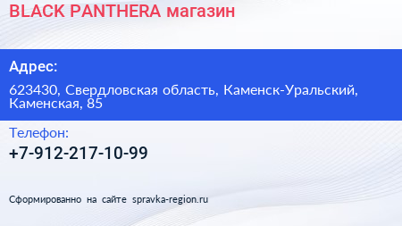 BLACK PANTHERA, магазин по адресу 623430, Свердловская область, Каменск-Уральский, Каменская, 85 в дальнейшем Организация, размещена в следующих категориях: