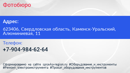 Фотобюро по адресу 623406, Свердловская область, Каменск-Уральский, Алюминиевая, 11 в дальнейшем Организация, размещена в следующих категориях: