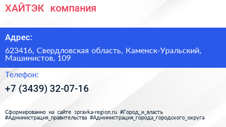 ХАЙТЭК+, компания по адресу 623416, Свердловская область, Каменск-Уральский, Машинистов, 109 в дальнейшем Организация, размещена в следующих категориях: