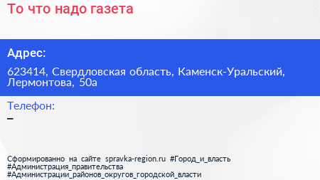 То, что надо, газета по адресу 623414, Свердловская область, Каменск-Уральский, Лермонтова, 50а в дальнейшем Организация, размещена в следующих категориях: