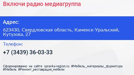 Включи радио, медиагруппа по адресу 623430, Свердловская область, Каменск-Уральский, Кутузова, 27 в дальнейшем Организация, размещена в следующих категориях: