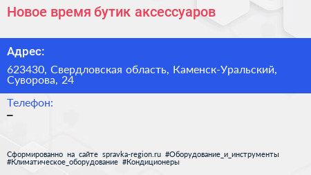 Новое время, бутик аксессуаров по адресу 623430, Свердловская область, Каменск-Уральский, Суворова, 24 в дальнейшем Организация, размещена в следующих категориях: