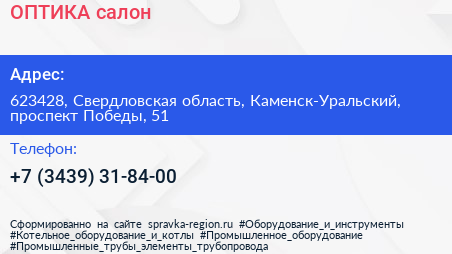 ОПТИКА, салон по адресу 623428, Свердловская область, Каменск-Уральский, проспект Победы, 51 в дальнейшем Организация, размещена в следующих категориях: