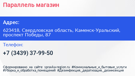 Параллель, магазин по адресу 623418, Свердловская область, Каменск-Уральский, проспект Победы, 87 в дальнейшем Организация, размещена в следующих категориях: