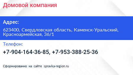Домовой, компания по адресу 623400, Свердловская область, Каменск-Уральский, Красноармейская, 36/1 в дальнейшем Организация, размещена в следующих категориях: