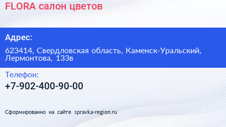 FLORA, салон цветов по адресу 623414, Свердловская область, Каменск-Уральский, Лермонтова, 133в в дальнейшем Организация, размещена в следующих категориях: