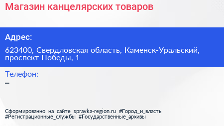Магазин канцелярских товаров по адресу 623400, Свердловская область, Каменск-Уральский, проспект Победы, 1 в дальнейшем Организация, размещена в следующих категориях:
