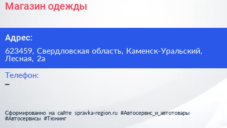 Магазин одежды по адресу 623459, Свердловская область, Каменск-Уральский, Лесная, 2а в дальнейшем Организация, размещена в следующих категориях: