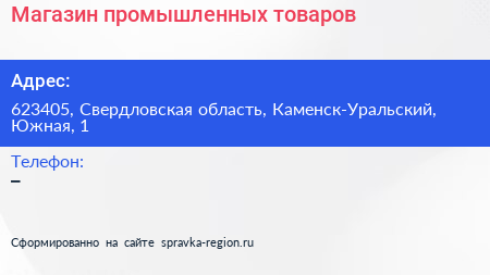 Магазин промышленных товаров по адресу 623405, Свердловская область, Каменск-Уральский, Южная, 1 в дальнейшем Организация, размещена в следующих категориях:
