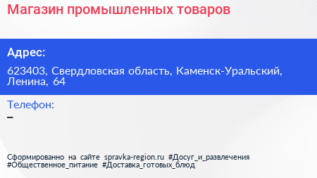 Магазин промышленных товаров по адресу 623403, Свердловская область, Каменск-Уральский, Ленина, 64 в дальнейшем Организация, размещена в следующих категориях: