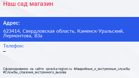 Наш сад, магазин по адресу 623414, Свердловская область, Каменск-Уральский, Лермонтова, 83а в дальнейшем Организация, размещена в следующих категориях:
