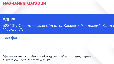 Незнайка, магазин по адресу 623401, Свердловская область, Каменск-Уральский, Карла Маркса, 73 в дальнейшем Организация, размещена в следующих категориях:
