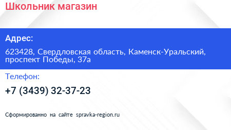 Школьник, магазин по адресу 623428, Свердловская область, Каменск-Уральский, проспект Победы, 37а в дальнейшем Организация, размещена в следующих категориях: