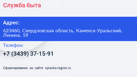 Служба быта по адресу 623460, Свердловская область, Каменск-Уральский, Ленина, 59 в дальнейшем Организация, размещена в следующих категориях: